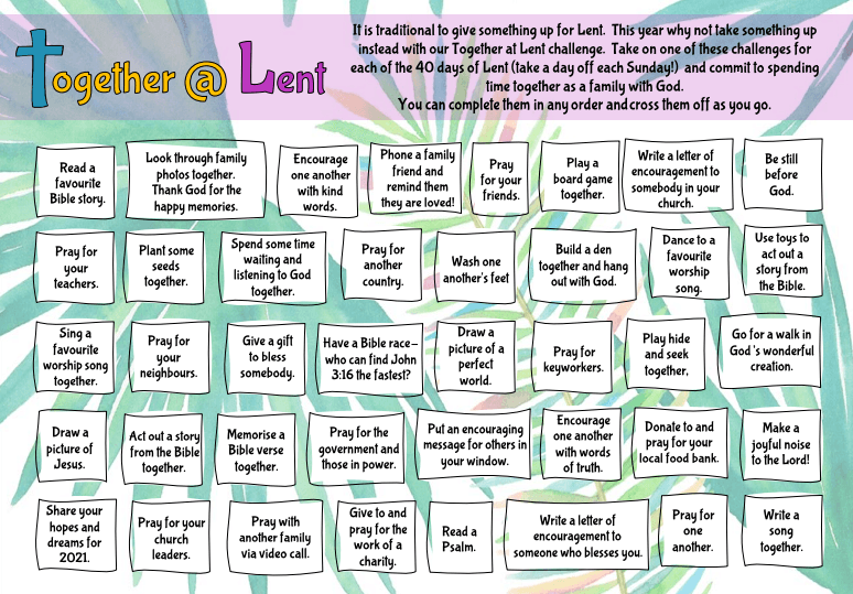 Each week during Lent we will post up the weekly challenge statements here.